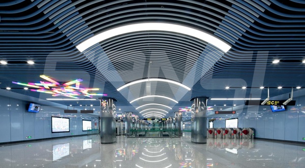 此次上海三思承接蘇州地鐵3號線其中19個站點的燈光設計和實施(包括4個特色站:蘇州新區火車站、寶帶路站、獅山路站和西津橋站)。40000余套LED反射式平板燈、筒燈、射燈、洗墻燈等燈具及獨特的燈光藝術設計,為該地鐵線路營造了別具一格的蘇州風味。
