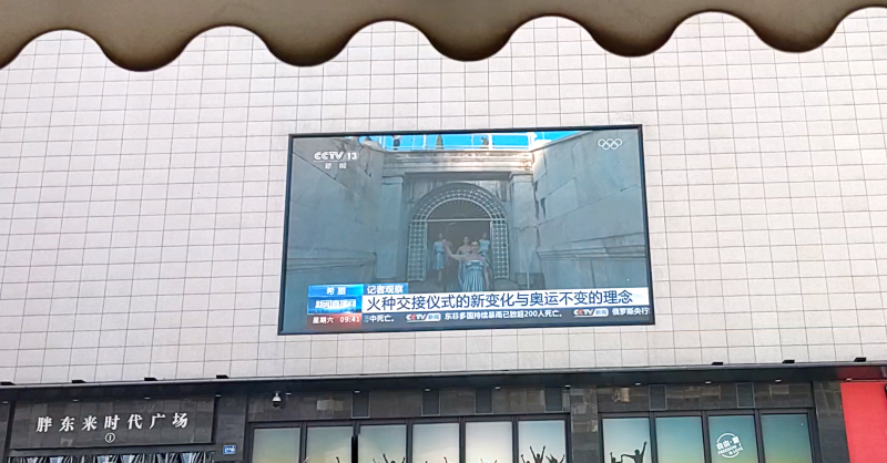 嵌于胖東來許昌時代廣場店外立面上方,一塊位置獨特的近100㎡戶外LED屏成為了消費者的必經之所,這是由上海三思為胖東來獨特定制的 LED戶外大屏,從每一處細節都能彰顯中國商超標桿胖東來對品質的卓越追求!
