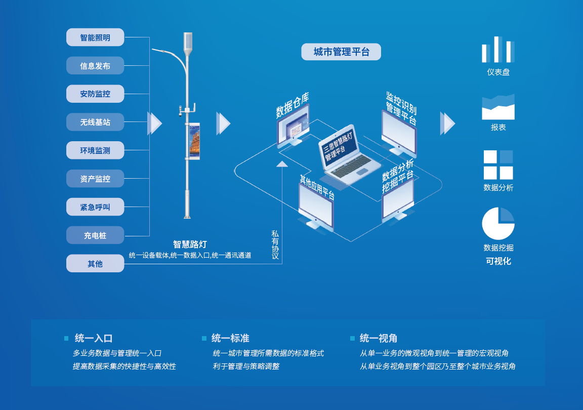 城市的精細(xì)化管理需要大量的數(shù)據(jù)依托,智慧路燈及燈桿系統(tǒng)利用其分布在城市各個道路的密集型特點(diǎn),可以實(shí)時收集和發(fā)布各項(xiàng)城市信息。通過對于數(shù)據(jù)及信息的收集和分析,為城市精細(xì)化管理提供重要的數(shù)據(jù)支撐,給城市建設(shè)者,管理者提供大量實(shí)效信息。