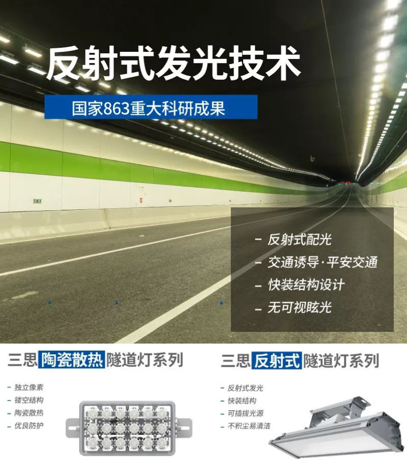 城北東、西兩條隧道全程共計(jì)使用三思萬余臺(tái)LED隧道燈,涵蓋獨(dú)特配光、結(jié)構(gòu)設(shè)計(jì)的反射式隧道燈、陶瓷散熱隧道燈等。一體式壓鑄成型的隧道燈,具有極高的結(jié)構(gòu)強(qiáng)度。同時(shí)通透式燈體與玻璃發(fā)光面設(shè)計(jì),做到表面積塵易清洗。