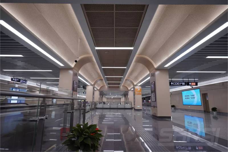 在標準站內,三思為出入口、通道、站廳等區域提供優質的照明環境,以保證充足的照度、合理的眩光值,使旅客出行得到理想的照明保障。產品光線柔和不刺眼,不易產生眩光,視覺更加干凈舒適,減輕視覺疲憊。而站臺層則通過高亮的燈光,對乘客起到警示作用,也能夠方便乘客獲知線路信息。