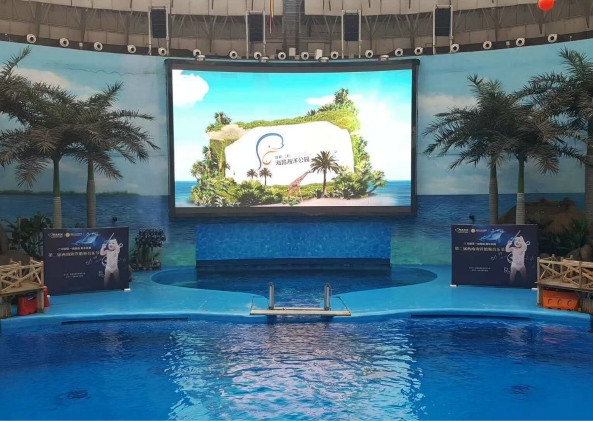 成都海昌海洋公園鯨豚表演館里,最引人注目的便是由三思新升級改造的LED顯示屏。這款屏高8.82米,寬14.4米,點(diǎn)間距為5mm,顯示屏面積足足達(dá)127平方米,讓游客即使位于邊角位置,也能清晰地看到白鯨和海豚的各種精彩瞬間。
